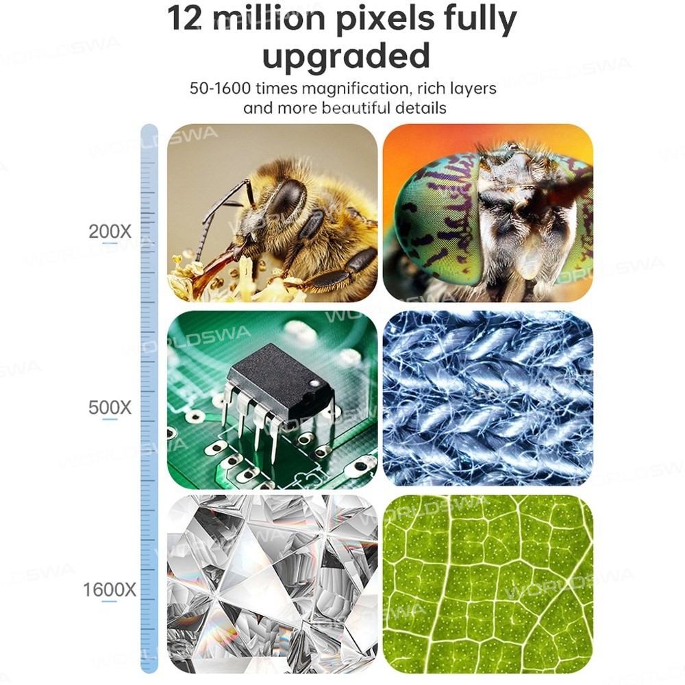 - High-quality imaging: 12-megapixel resolution and 50-1600X adjustable magnification design, ideal for observing microscopic details.