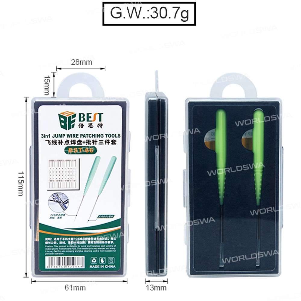 BST-66 3-in-1 Jump Wire Soldering Patching Tools with 2pcs Stainless Remove Glue Scraper Needles