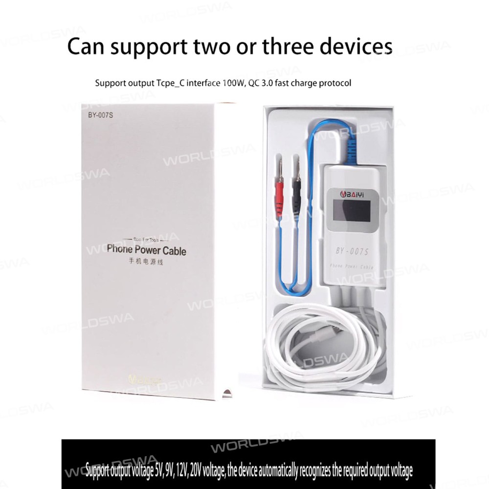 This BY-007S Mutil-function Smart Charging Detection Tion Line supports multiple fast-charging protocols, has a LED display, and five protection functions. It can quickly determine whether the charging function of the connected device is normal and supports simultaneous output of two or three devices. It is compatible with various devices including Android phones, iPhone phones, iPad tablets, MacBook computers, and more.