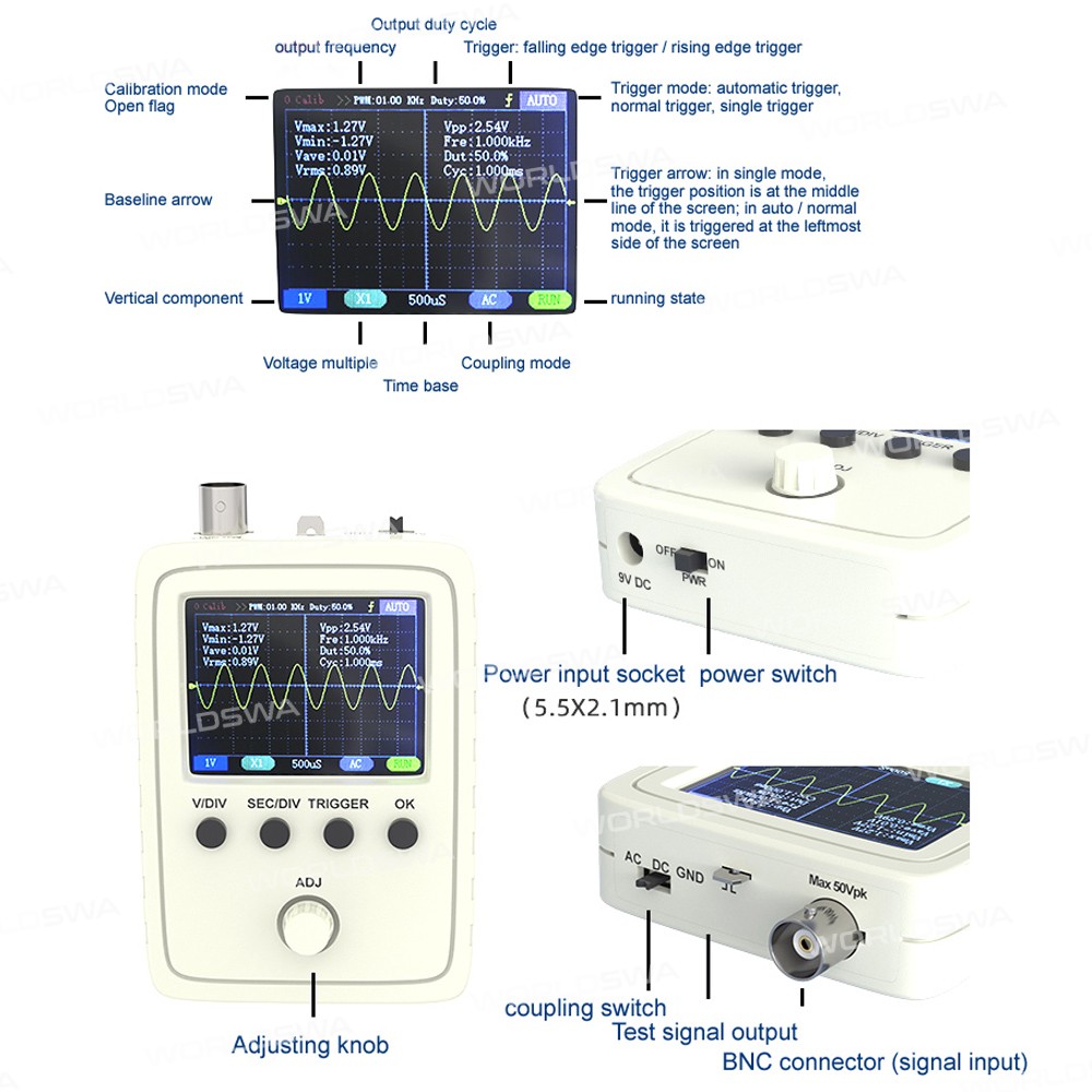 - This DIY digital oscilloscope kit adopts an ARM Cortex-M3 processor with a 2.4-inch TFT screen and protective case.