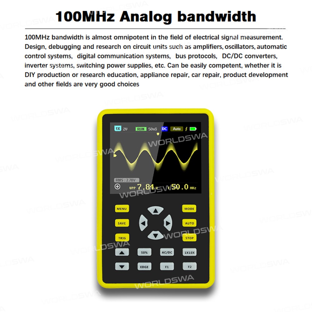 - **Wide Analog Bandwidth**: 100MHz analog bandwidth for capturing high-frequency signals