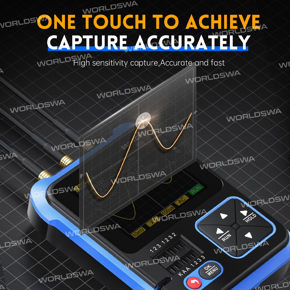 - Oscilloscope with real-time sampling rate of 10MS/s, bandwidth of 500KHz, and maximum measurement of 400V voltage signal