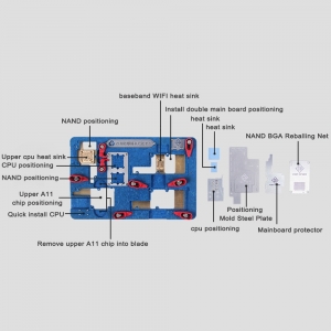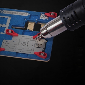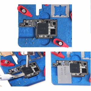 This premium fixture is designed for professional iPhone motherboard repair, offering a comprehensive solution for CPU NAND chips positioning, disassembly, soldering, and more. The cooling high-temperature resistant feature provides the best assistance for fixing iPhone motherboards.