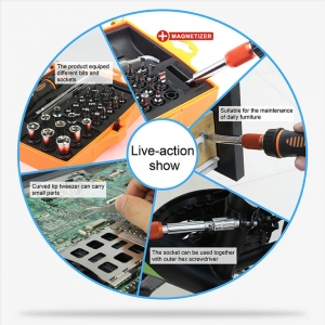 This high-quality professional repair tool kit is designed to provide you with a comfortable and convenient repair experience. The kit includes a non-slip ergonomic TPR material handle, a strong magnetic extended bar with three sections, and a built-in magnetizer to make the product more practical and durable.