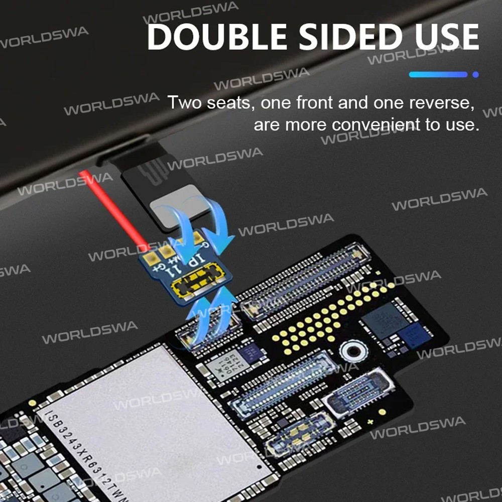 This double-sided battery buckle is designed for iPhone 8-15 series, Huawei Mate 30/40/50 Series, Meizu series, and other mobile phone models. It supports all DC power meters on the market and is compatible with various phone models.