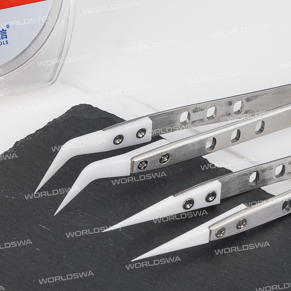 KGX-TC002 Insulation Nonmagnetic Ceramic Head Stainless Steel Tweezers for Mobile Phone Repair