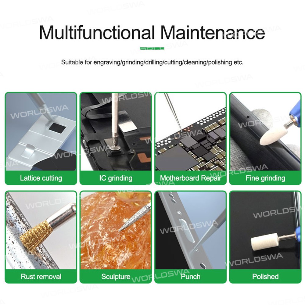 - Multi-Purpose Use**: Satisfy the needs of maintenance and processing masters such as grinding, punching, lettering, cutting, CPU grinding, repairing CPU, rust removal, polishing, etc.