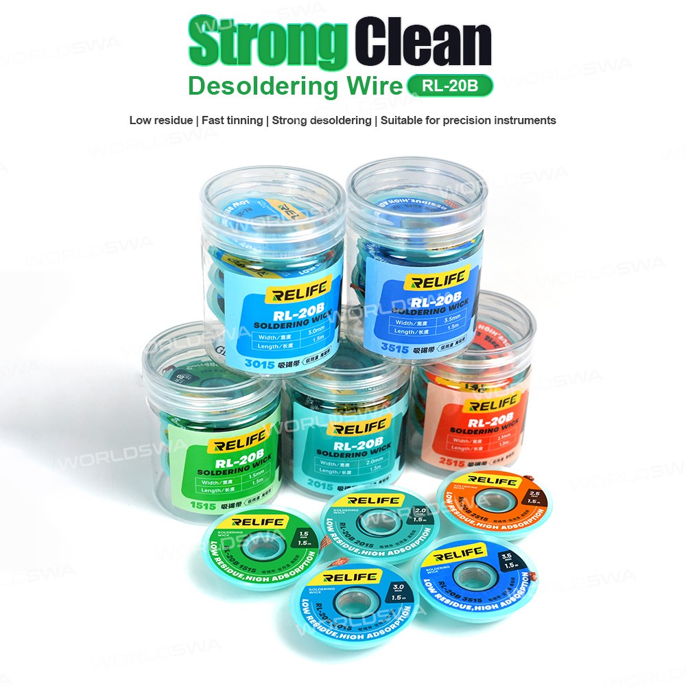 Relife RL-20B 1.5M Desoldering Wire - Strong, Fast, Low Residue Cleaning, 5Pcs