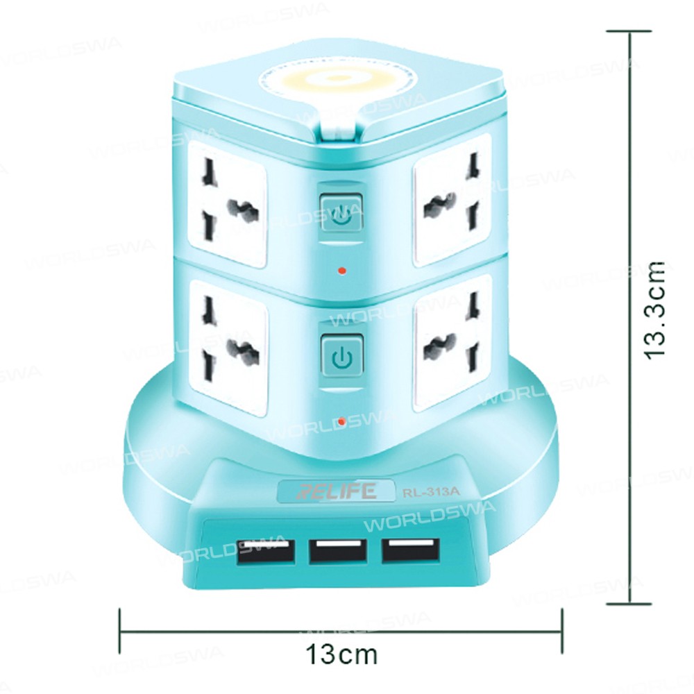 Relife RL-313A 10A Multi-function Smart Power Socket with 3 Fast Charge USB Ports