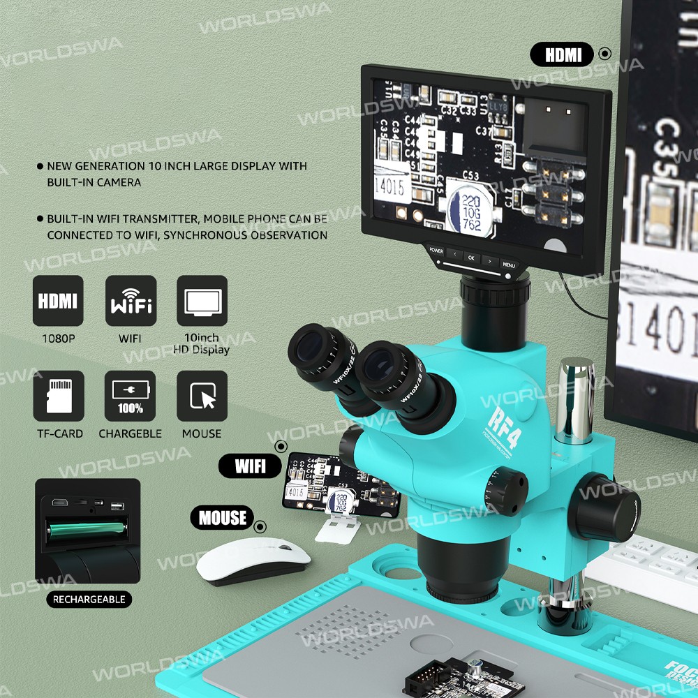 RF4 RF7050TV-2KC1-S010 7-50X Electronic Trinocular Microscope with 10-inch Monitor & 2K Camera