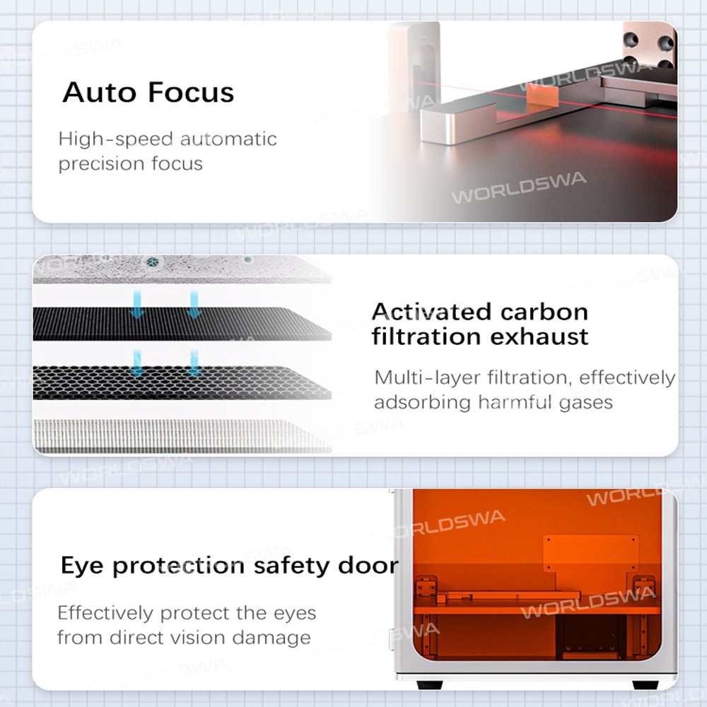 - **Safety Features**: Activated carbon filtration exhaust: Multi-layer filtration, effectively adsorbing harmful gases; Eye protection safety door: Effectively protects the eyes from direct vision damage