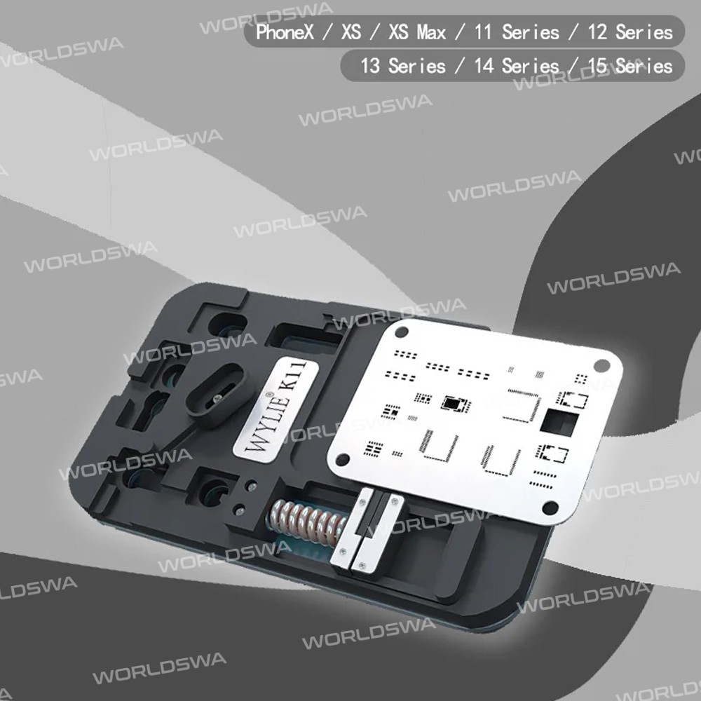 This Wylie K11 Face ID Dot Matrix Calibrate Fixture with Stencil is designed for iPhone X to 15Pro Max, providing accurate positioning and tin planting platform for precise calibration.
